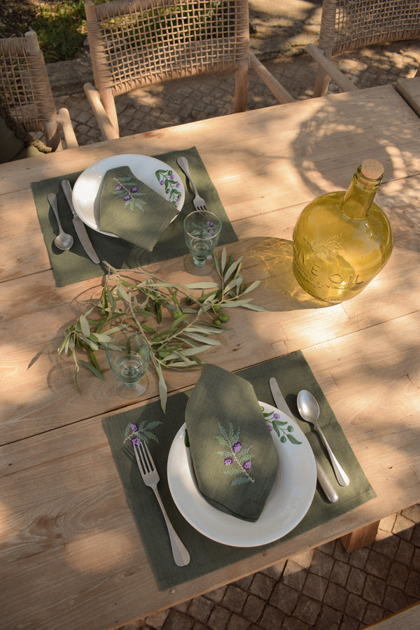 Hand-Embroidered Tatreez Olive Branch Linen Placemat | Palestinian Heritage Textile