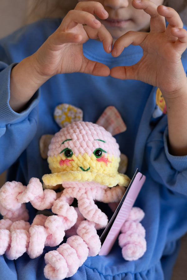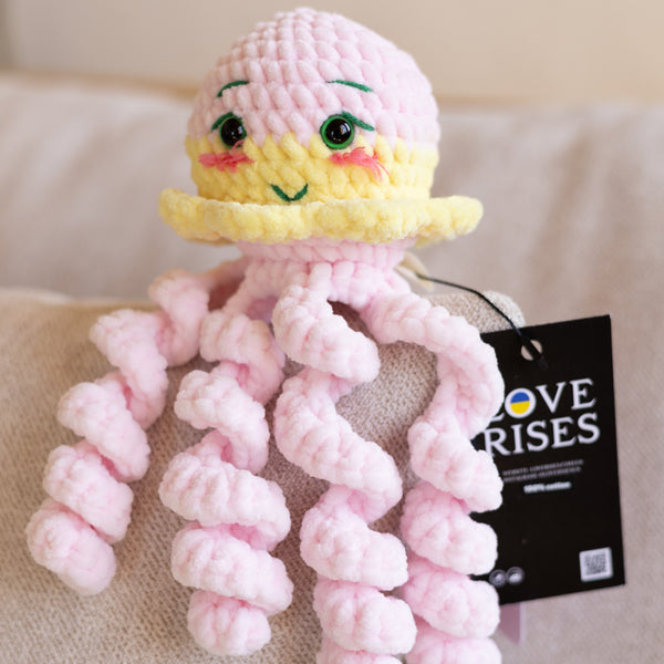 Lovingly crafted by displaced Ukrainian artisan women in Kyiv, each octopus represents strength, resilience, and the healing power of creativity. In the midst of conflict and uncertainty, these women use their knitting skills to rebuild their lives, support their families, and connect through community.