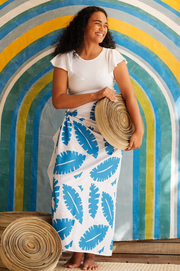 Handprinted through Rise Beyond the Reef’s Studio Print Program, each sulu supports professional job training for youth from rural communities in Fiji, including persons with disabilities—empowering the next generation through craft and opportunity.