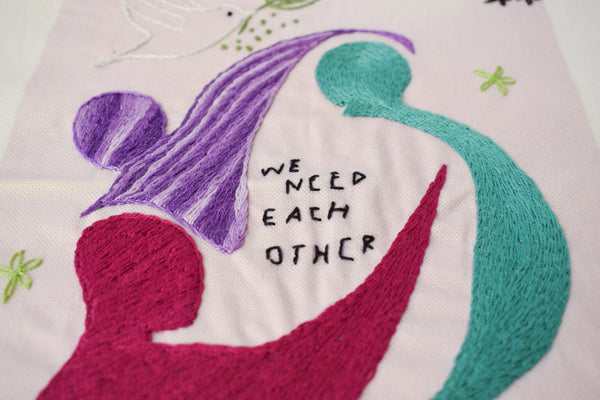 Hand-Embroidered “We Need Each Other” Art – Celebrating Connection & Peace | Original & Fine Art Print Available
