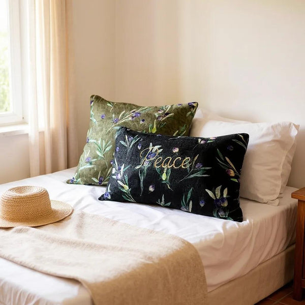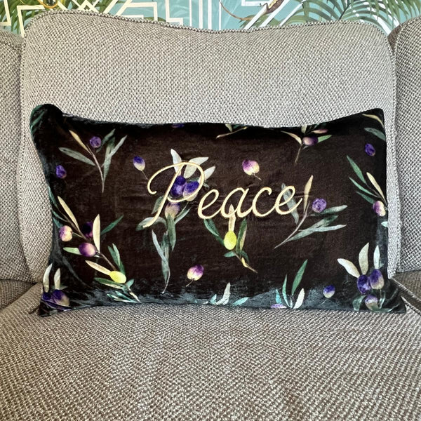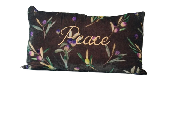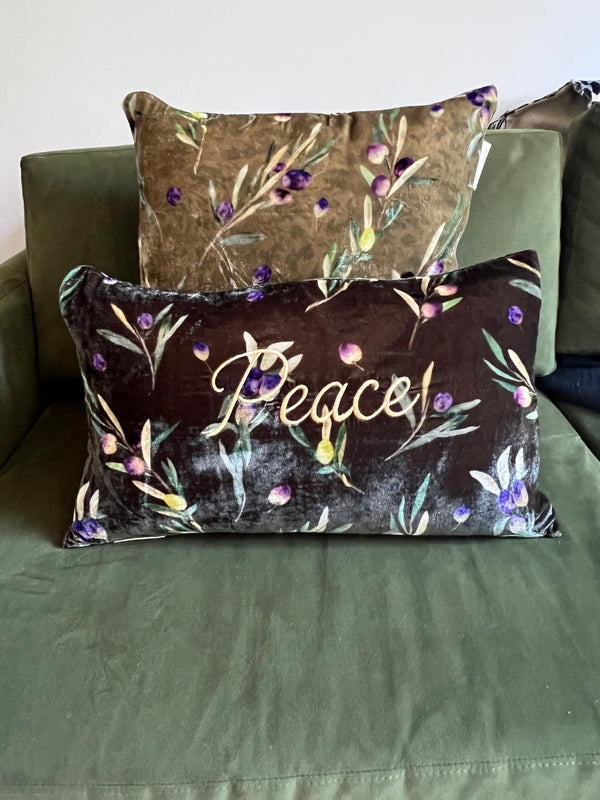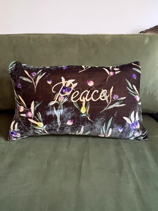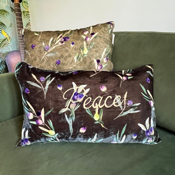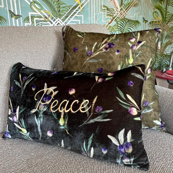 Peace Velvet Pillow – Olive Print (12 x 20 in / 30 x 50 cm)