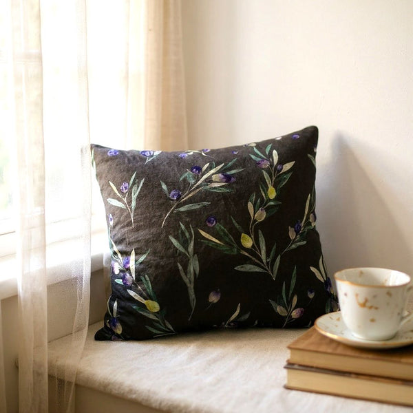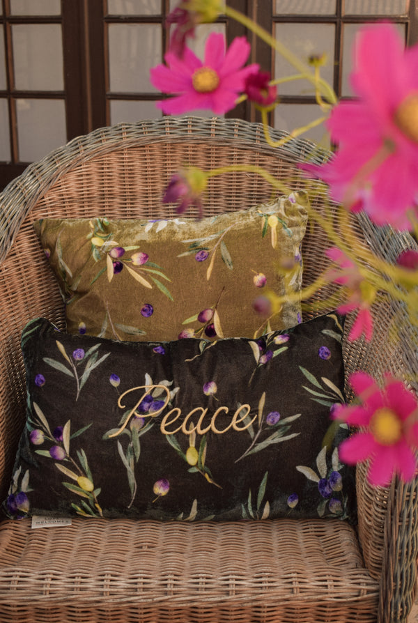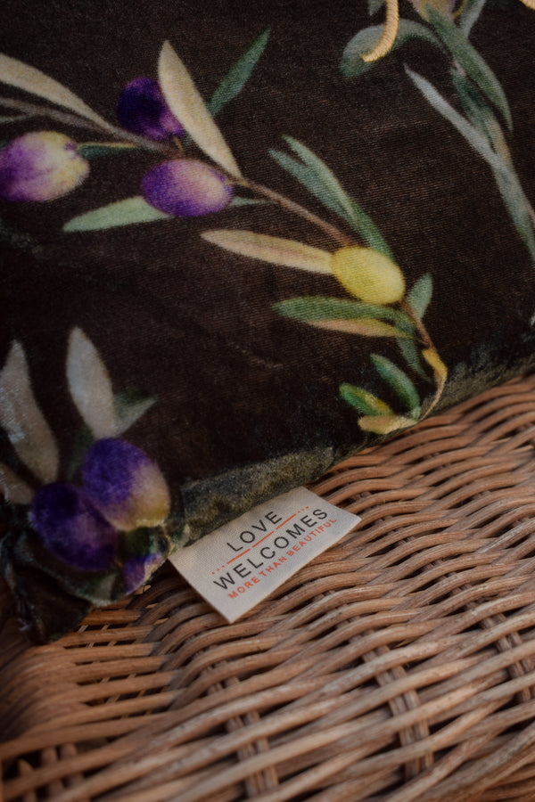 Olive Print Velvet Pillow Cover – 45 x 45 cm / 18 x 18 in